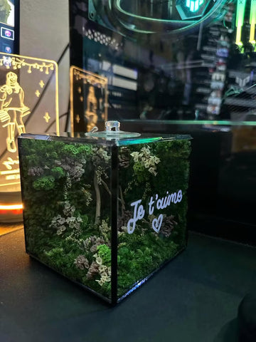 A: Preserved moss is freshly harvested moss treated with a glycerin-based solution replacing its natural moisture, which keeps its supple texture and vibrant color for up to 8–10 years without needing soil, water, or direct sunlight.