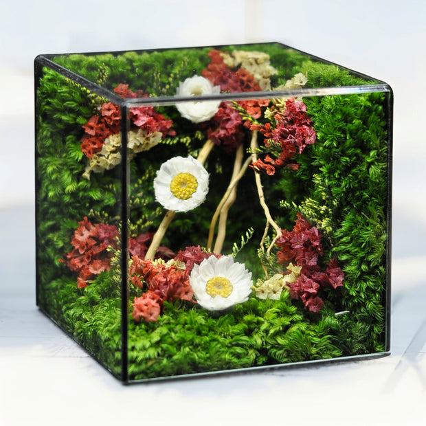 Yes, all the elements – the moss, flowers, and branches – are real natural botanicals that have been carefully preserved! We use an eco-friendly preservation process, making this Handmade Preserved Moss & Flower Cube a wonderful, sustainable alternative to fresh-cut flowers, reducing waste while providing years of enjoyment and a touch of nature's serenity.