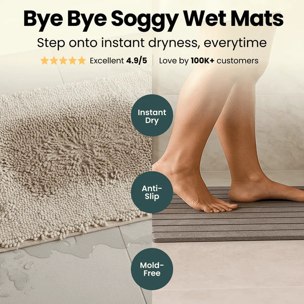Love it so much! Goes so well with my bathroom , dries instantly, very heavy it stays on the floor without slipping. The stone feels great on feet. Getting every single bathroom in my house one. Very reasonable price point as well compares to others.