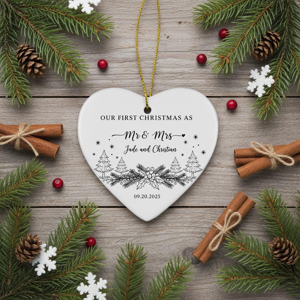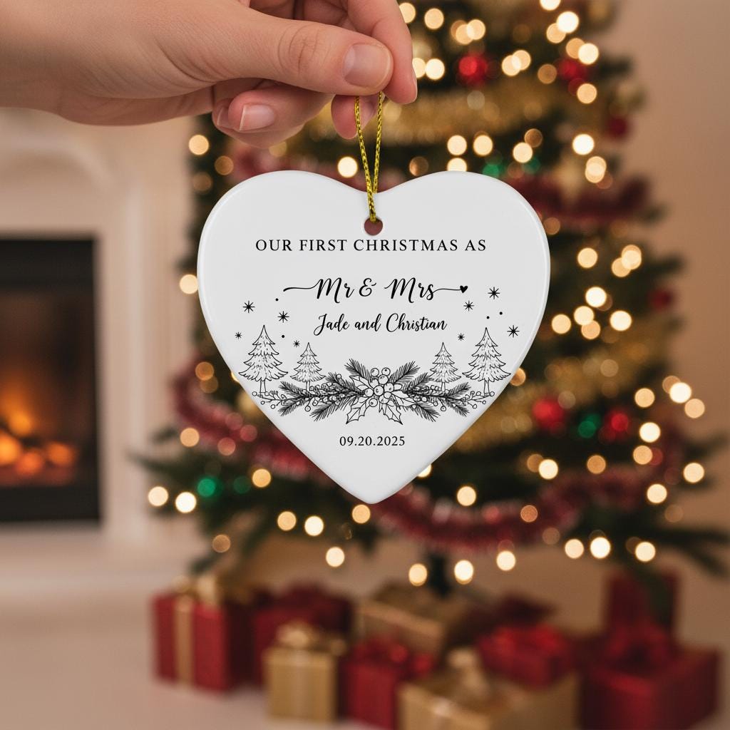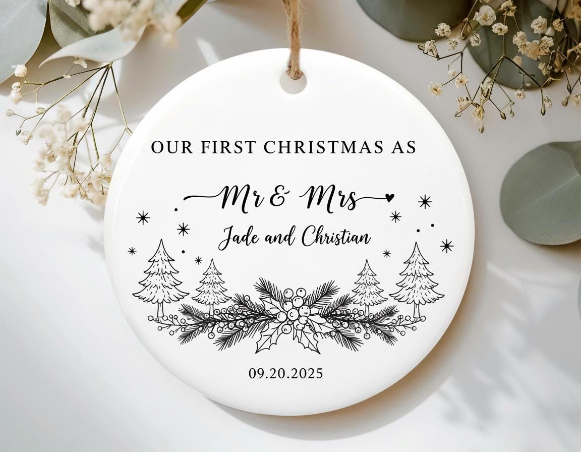 Personalized Christmas Ornament 2025 - Our First Christmas As Mr & Mrs